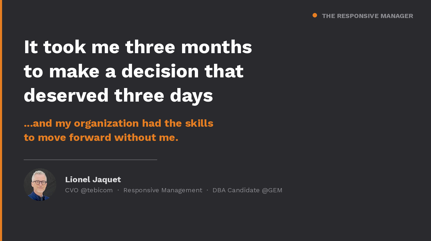 Three clear options. Managers capable of evaluating them. Data available. And yet: three months of status quo. Not because the analysis was complex. Not because people were dragging their feet. Because the decision had to go through me, and I had other fires to put out.