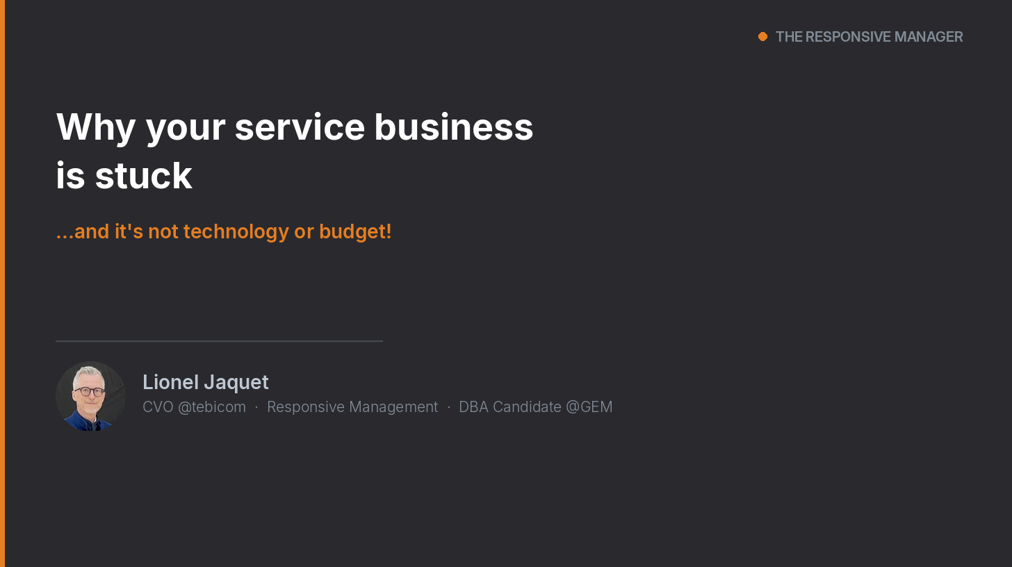 The Responsive Manager will be published every two weeks. Each edition will address a concrete problem related to the adaptive capacity of service SMEs: change governance, resource recomposition, knowledge capture, capability development, execution cadence. The perspective will be that of a practitioner-researcher: I run a service business (tebicom), I am pursuing a doctorate at GEM – Alpine Business School on these topics, and I live these decisions every day.
